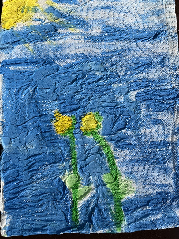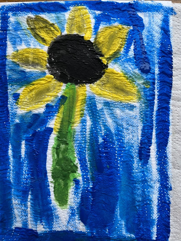 Słoneczniki - malowanie na materiale higienicznym: