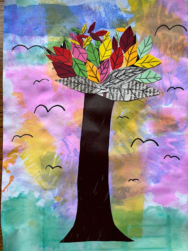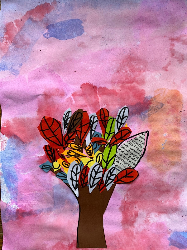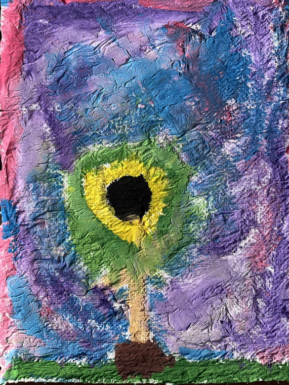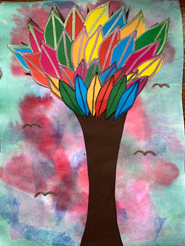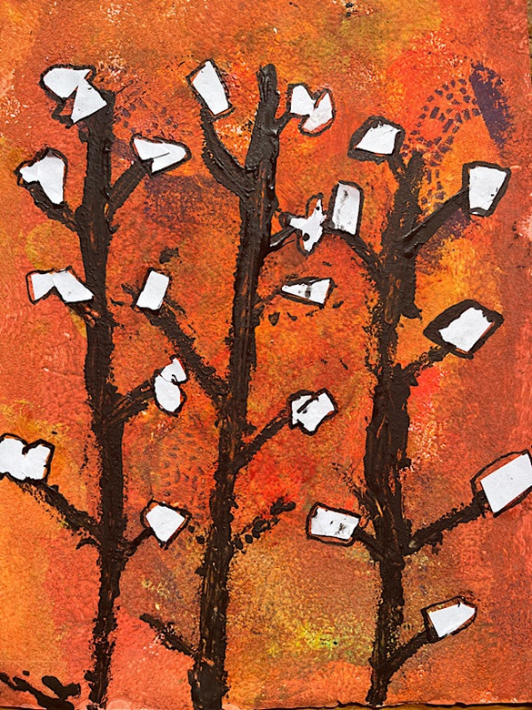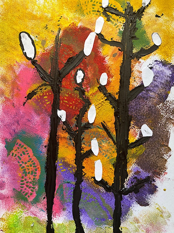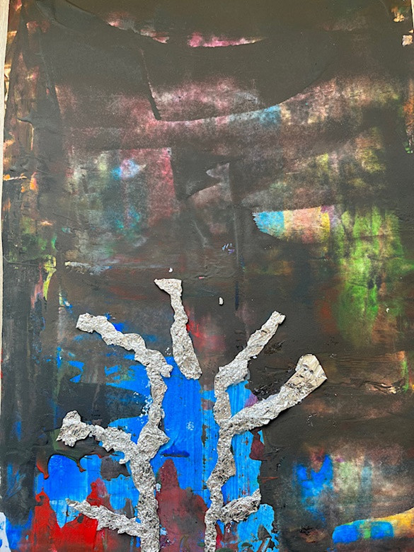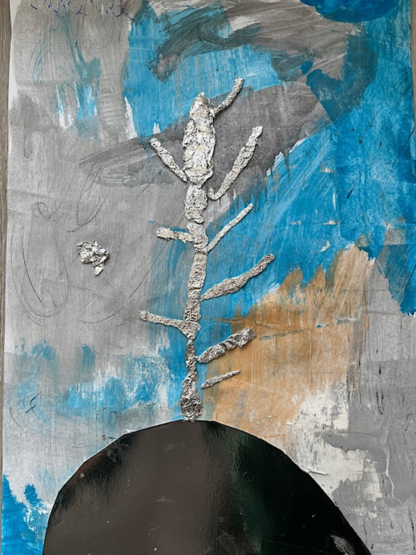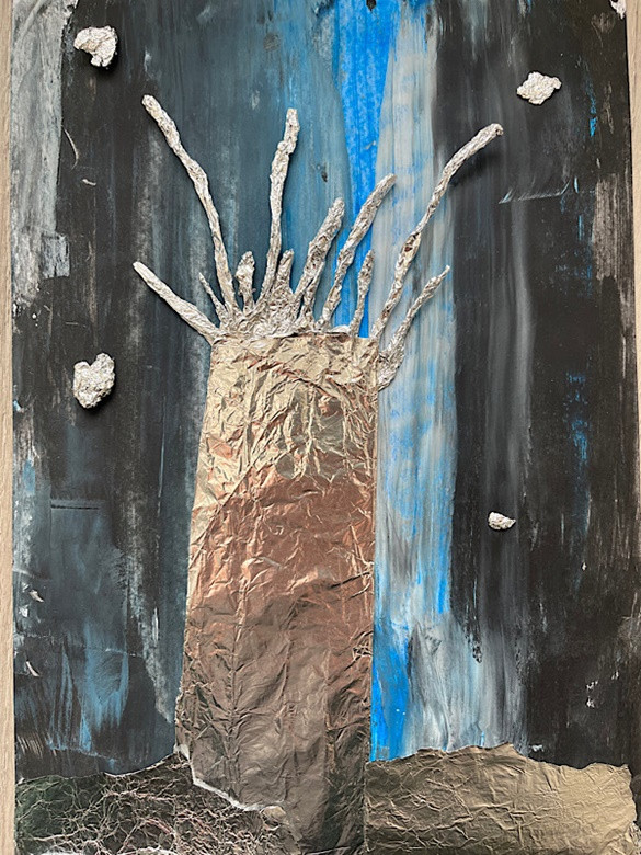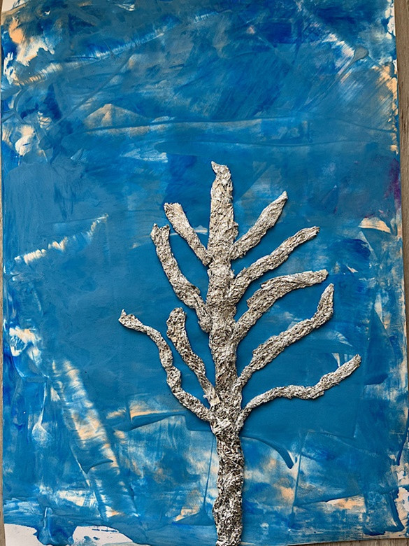 Zimowe drzewo - wyklejanka z folii aluminiowej, tło - malowanie: