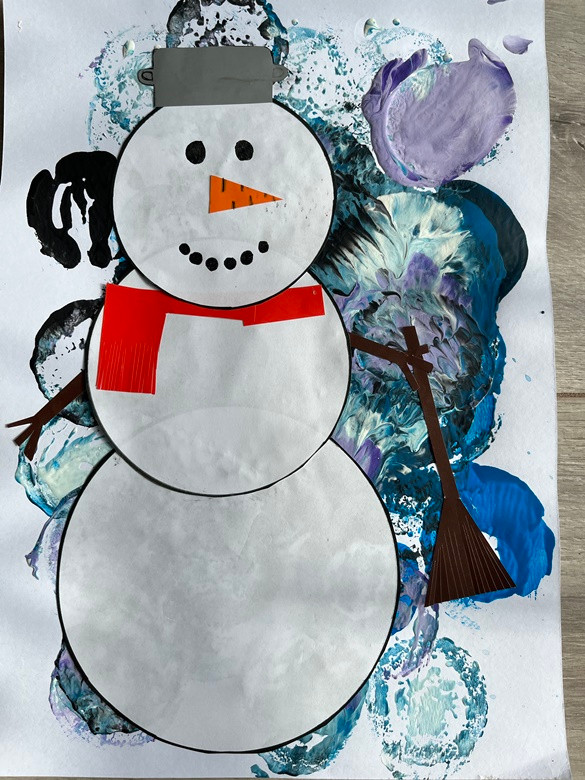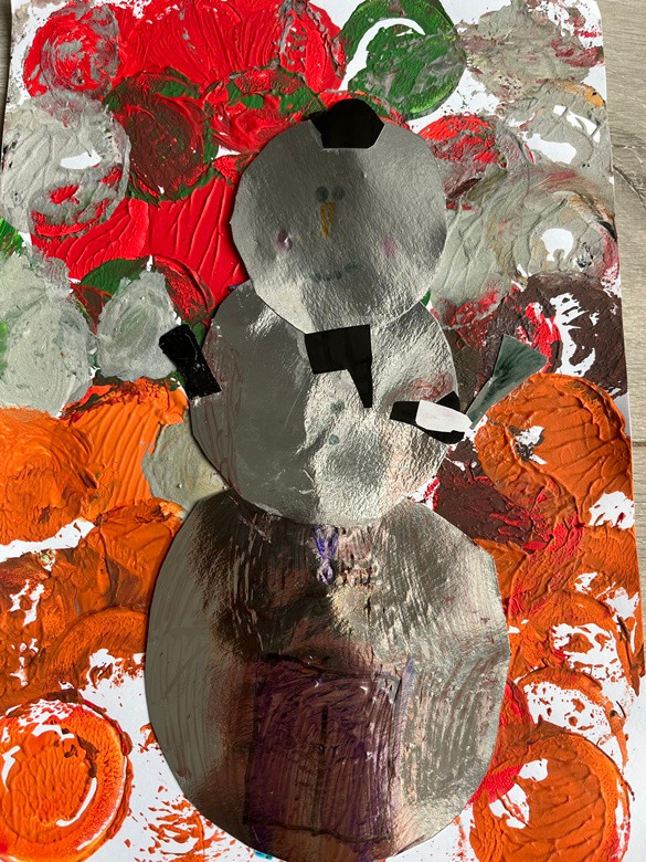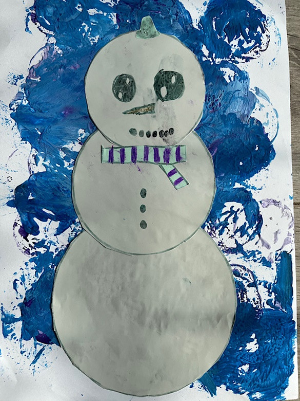 Bałwanek - technika mieszana, tło - drukowanie foremką: