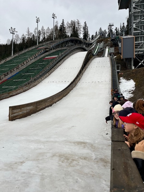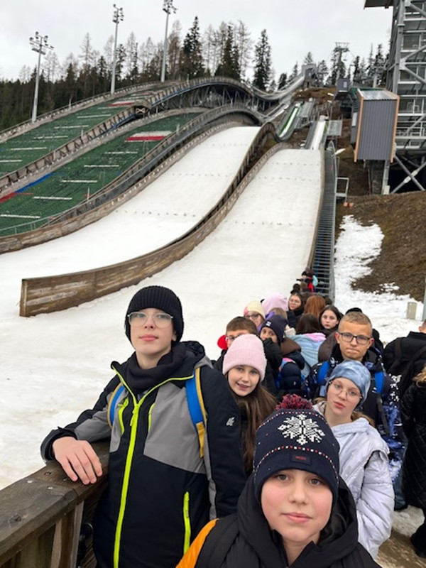 Na zakończenie wycieczki spacerem przez Krupówki udaliśmy się pod Wielką Krokiew, jedną z najsłynniejszych skoczni narciarskich w Polsce. Uczniowie mieli okazję zobaczyć obiekt znany z licznych zawodów sportowych i dowiedzieć się więcej o historii skoków narciarskich.