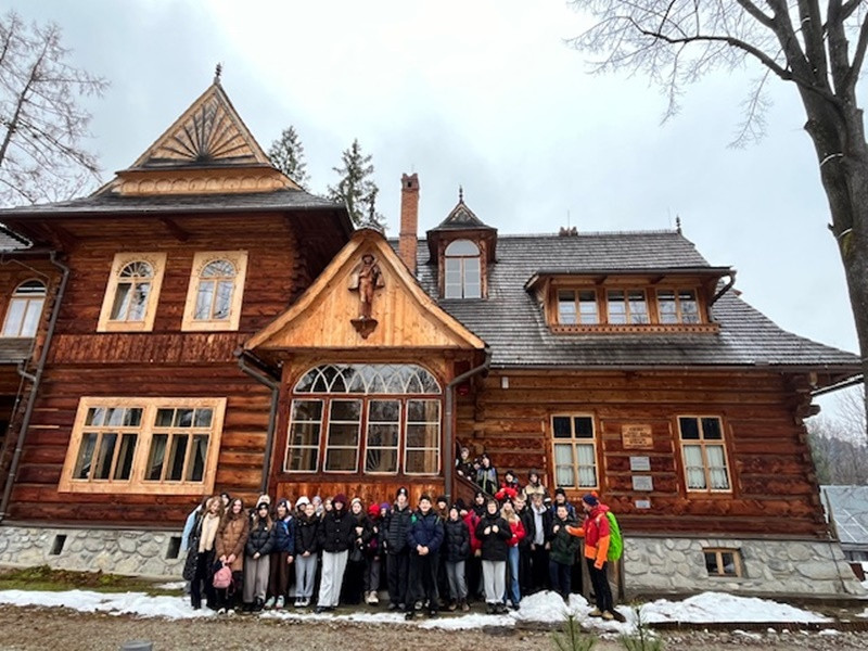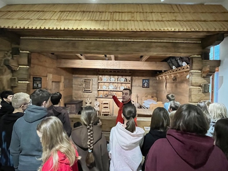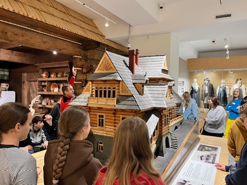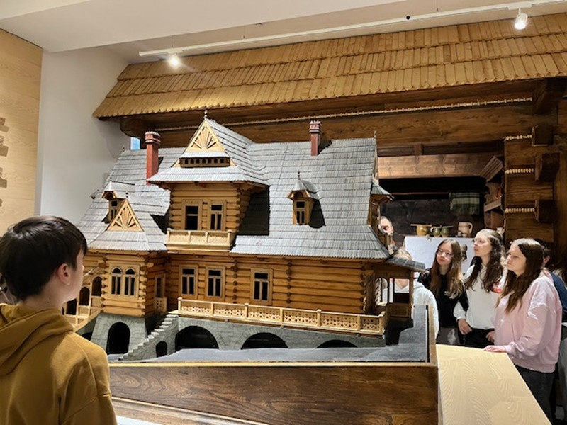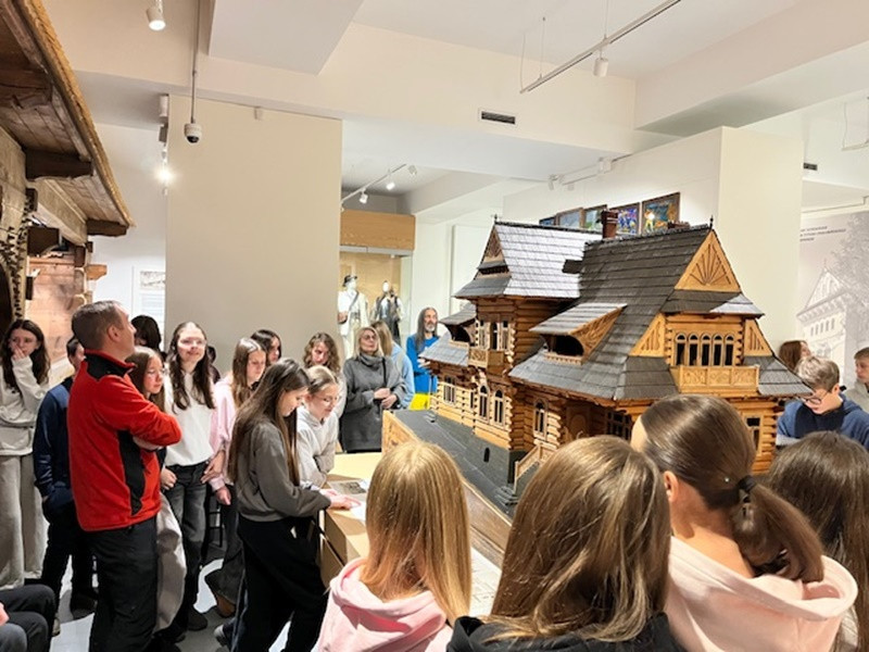 Kolejnym etapem wycieczki była wizyta przy willi Koliba, uznawanej za najstarszą willę w Zakopanem i doskonały przykład stylu zakopiańskiego. Uczniowie dowiedzieli się jak wyglądało życie dawnych mieszkańców Podhala.