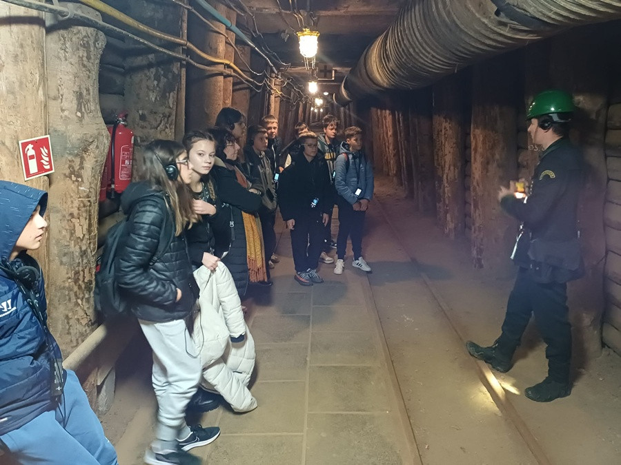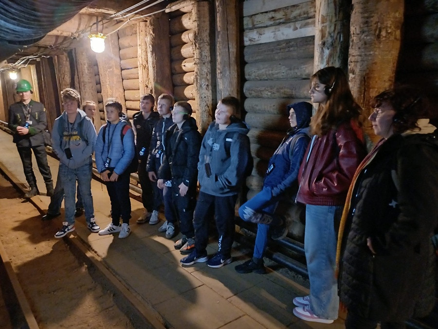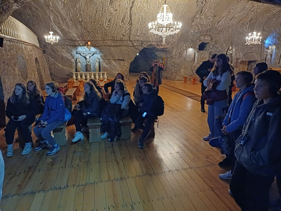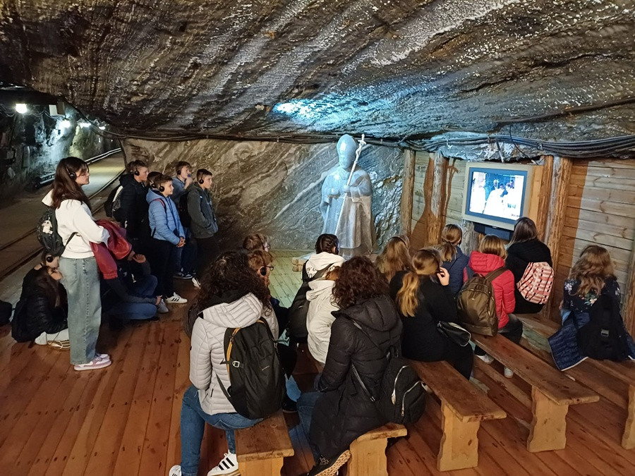 Drugi dzień pobytu uczniów i nauczycieli ze Słowenii w Myślenicach rozpoczął się od wizyty w najstarszej w Polsce Kopalni Soli w Bochni. Zwiedzanie rozpoczęliśmy od zjazdu windą górniczą na głębokość 212 metrów.