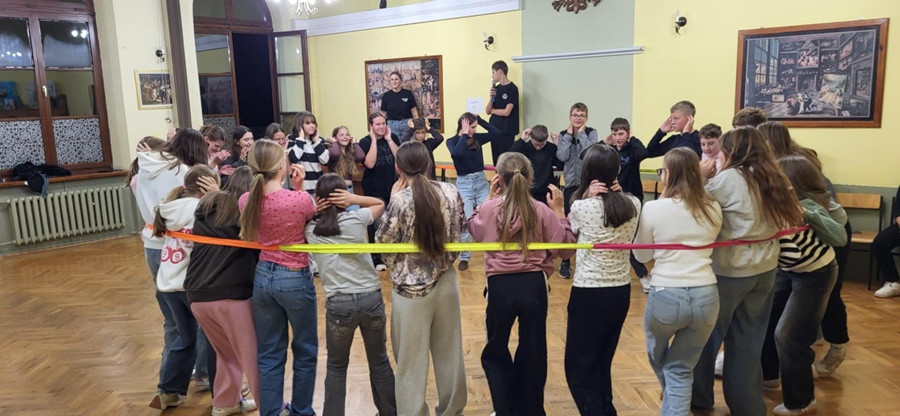 Podczas podziemnego spaceru słuchaliśmy prelekcji przewodnika oraz oglądaliśmy prezentacje multimedialne które przybliżyły nam historię tego zabytkowego miejsca. Podziemny spacer trwał około 4 godzin, a jedną głównych atrakcji był rejs po podziemnym jeziorze. Uczniowie skorzystali również z możliwości gry na podziemnym boisku sportowym.