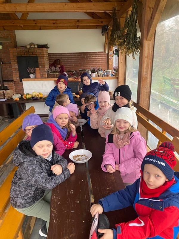 Wyjazd łączył zabawę z edukacją przyrodniczą i kulinarną. Najważniejsze były uśmiechy, współpraca i nowe doświadczenia — a pyszna zupa dyniowa była idealnym podsumowaniem wyjazdu.