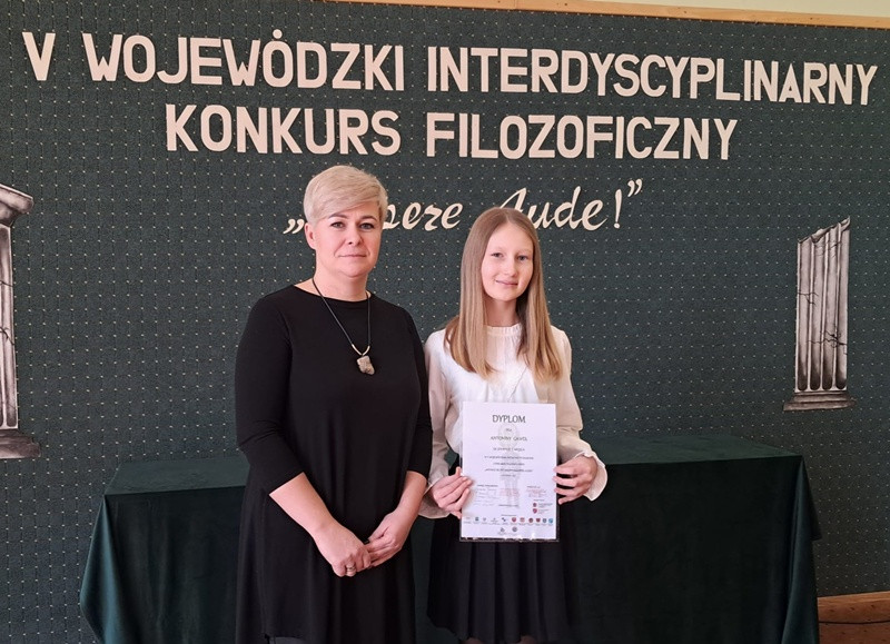 Z dumą informujemy, że uczennica naszej szkoły Antonina Gaweł z klasy 7B zdobyła I miejsce w kategorii ESEJ (VII–VIII klasy szkoły podstawowej), potwierdzając wysoki poziom przygotowania i dojrzałość refleksji. Jej praca rozważała następujący temat: Jak można filozoficznie uzasadnić granice moralnej walki o wartości?