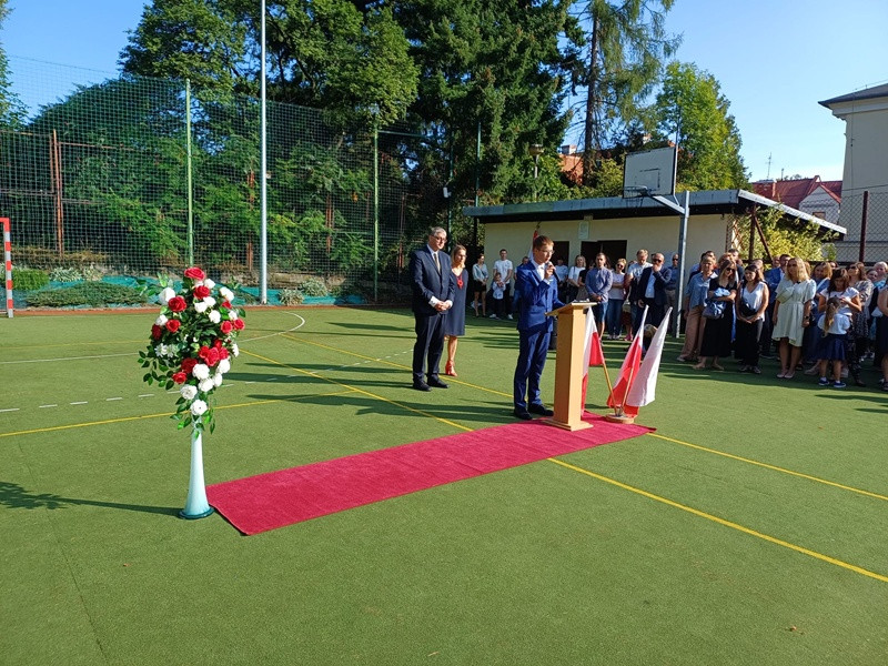 Głos zabrał Dyrektor szkoły, który w swoim przemówieniu skierował słowa otuchy i motywacji do wszystkich uczniów, życząc im wytrwałości, ciekawości poznawczej oraz wielu sukcesów w nadchodzącym roku. Podkreślił również rolę szkoły jako miejsca nie tylko nauki, ale także budowania relacji, wartości i wzajemnego szacunku.