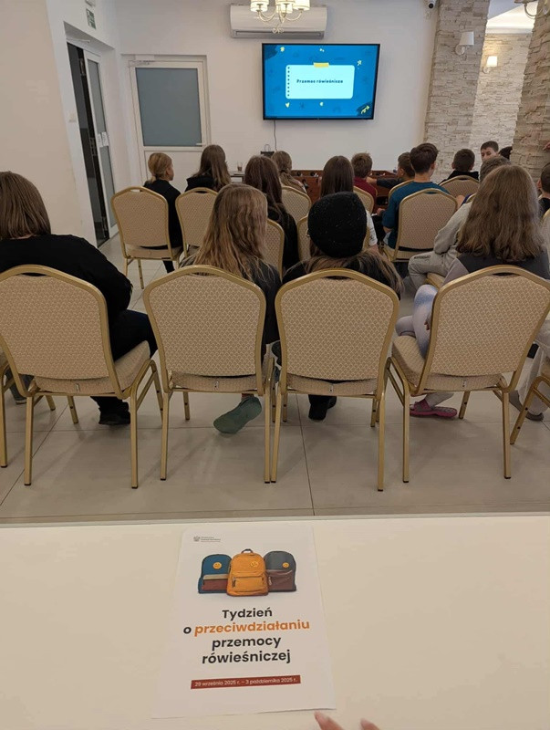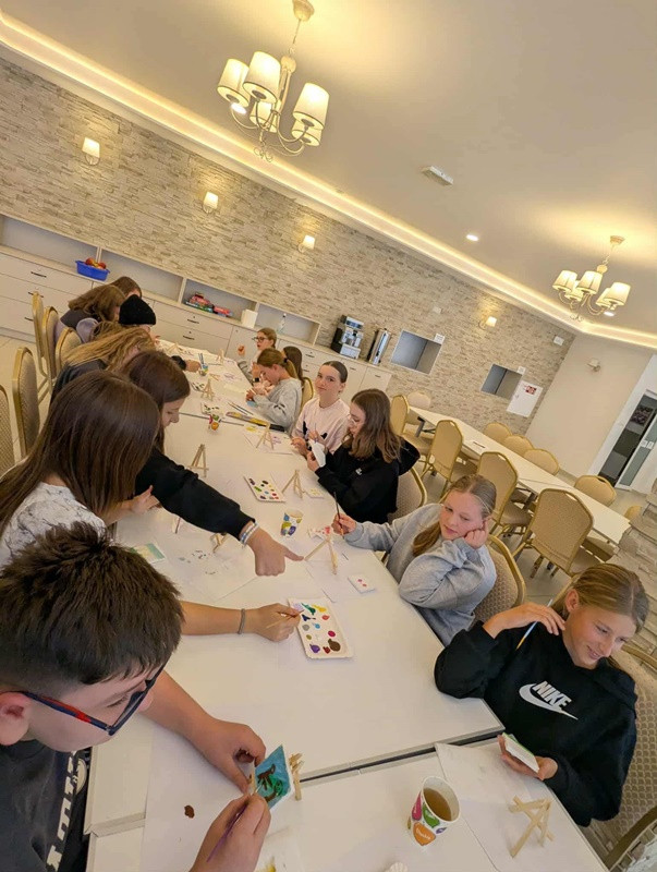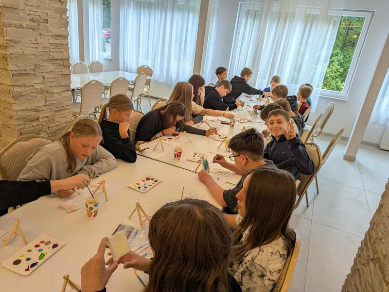 Ważnym punktem na wyjeździe było spotkanie profilaktyczne dotyczące przeciwdziałania przemocy. Uczniowie uczestniczyli w warsztatach, podczas których rozmawiali o empatii, szacunku i sposobach reagowania na trudne sytuacje. Efektem tych spotkań były prace plastyczne pod hasłem „Stop przemocy”, które pokazały zaangażowanie i kreatywność młodych uczestników.