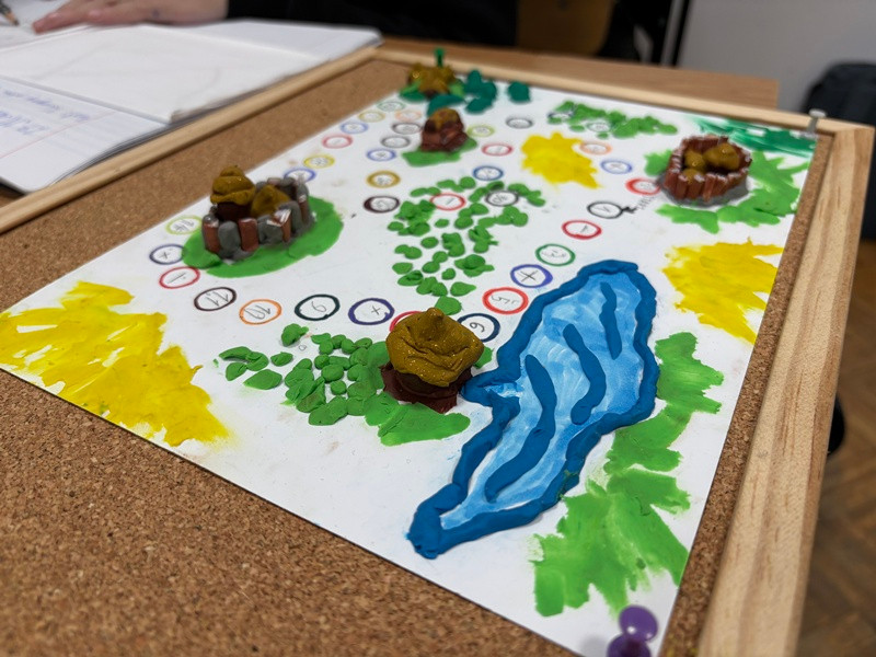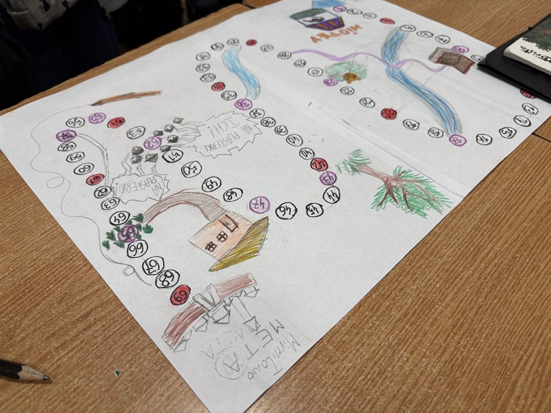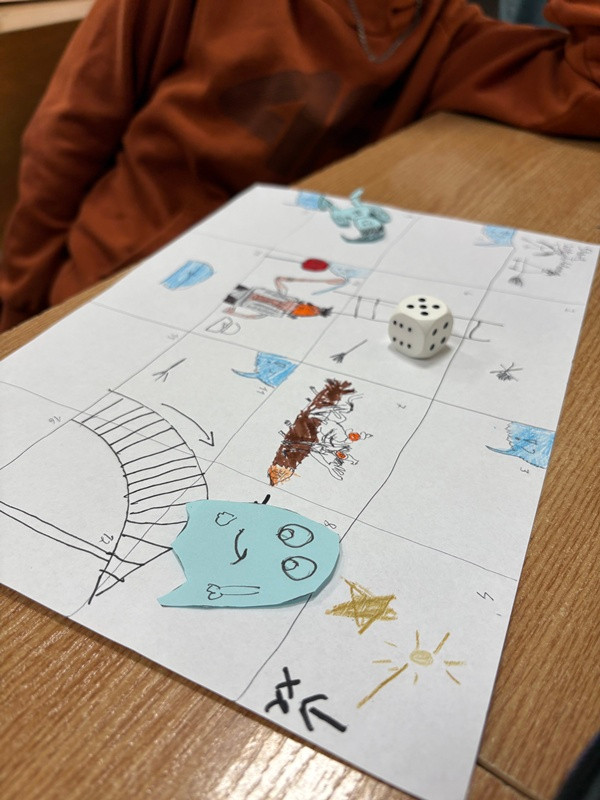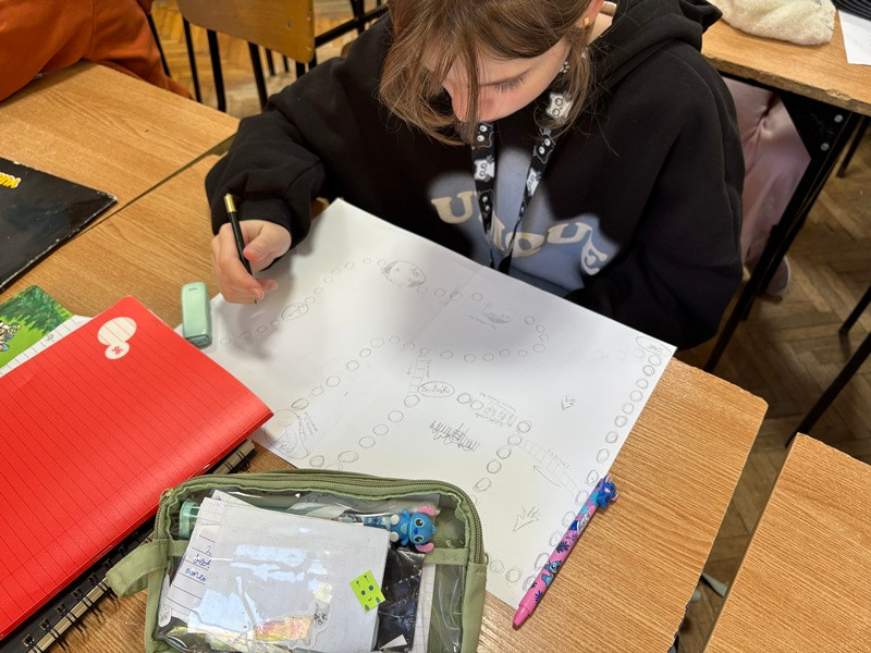 Na fotografiach widać skupione twarze młodych projektantów, kolorowe plansze pełne postaci z komiksu oraz radość podczas wspólnej gry. Niektórzy uczniowie z zapałem objaśniają zasady, inni notują punkty lub rzucają kostką, a jeszcze inni prezentują swoje prace przed klasą. Te ujęcia najlepiej pokazują, że nauka może być nie tylko pożyteczna, ale też pełna pasji i świetnej zabawy!