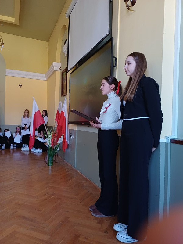 Każdy występ, dekoracja, próba czy drobny gest sprawiły, że świętowanie nabrało wyjątkowego charakteru. Dzięki Wam szkolne korytarze wybrzmiewały dziś historią, a tegoroczne obchody pokazały, że pamięć o niepodległości to nie tylko wspominanie przeszłości, lecz także budowanie wspólnoty tu i teraz.