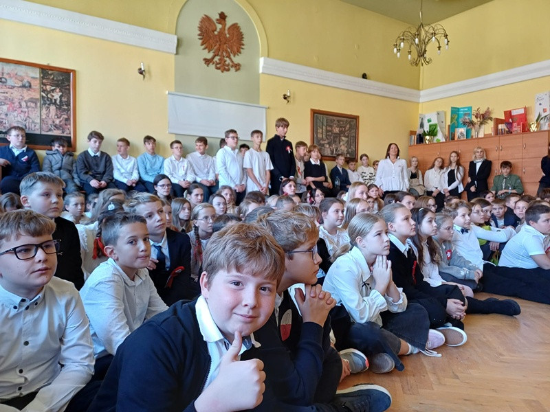 W piątkowy poranek nasza szkoła zamieniła się w miejsce pełne barw i brzmień, które przypominały, jak ważna jest pamięć o historii. Na obchody Narodowego Święta Niepodległości złożyły się dwie akademie. Najpierw swoje występy zaprezentowały klasy 1–3, później odbyło się spotkanie przygotowane przez przedstawicieli klas 4–8.