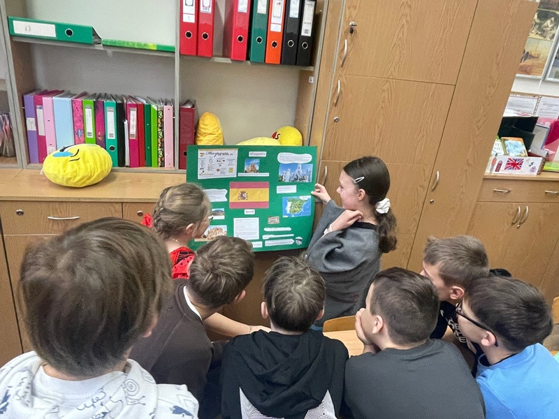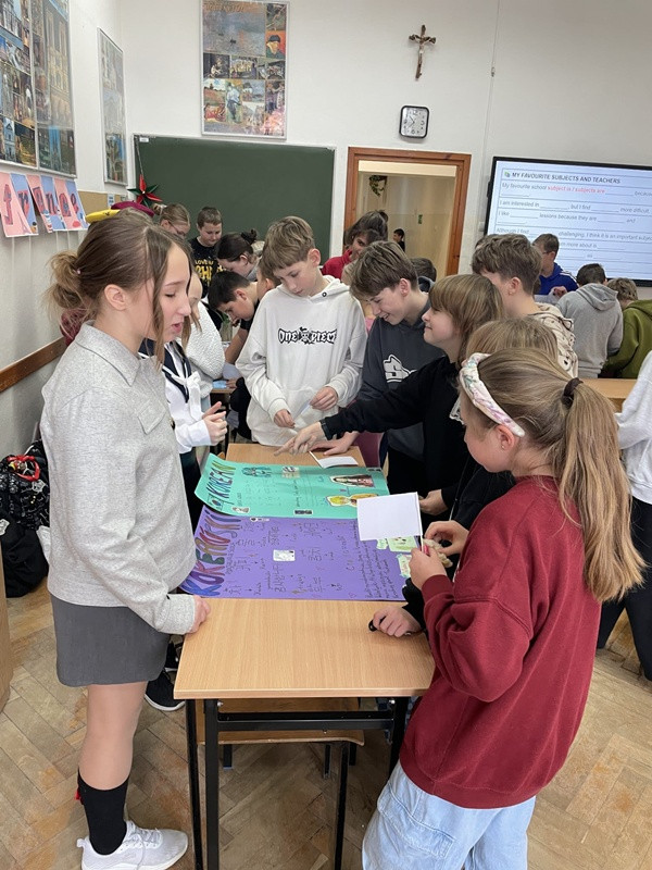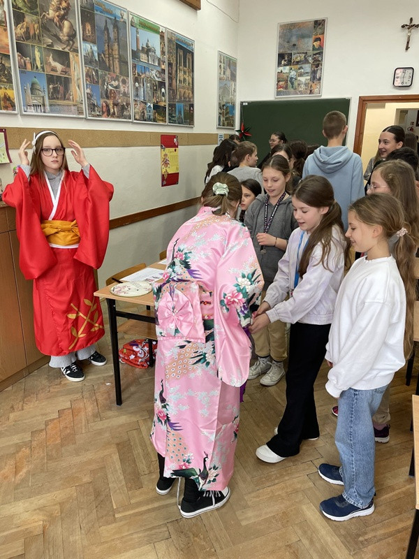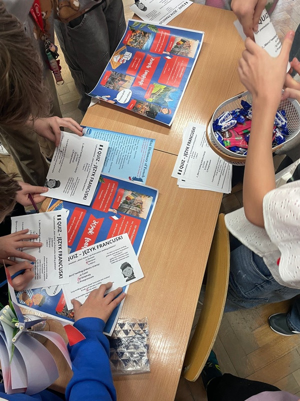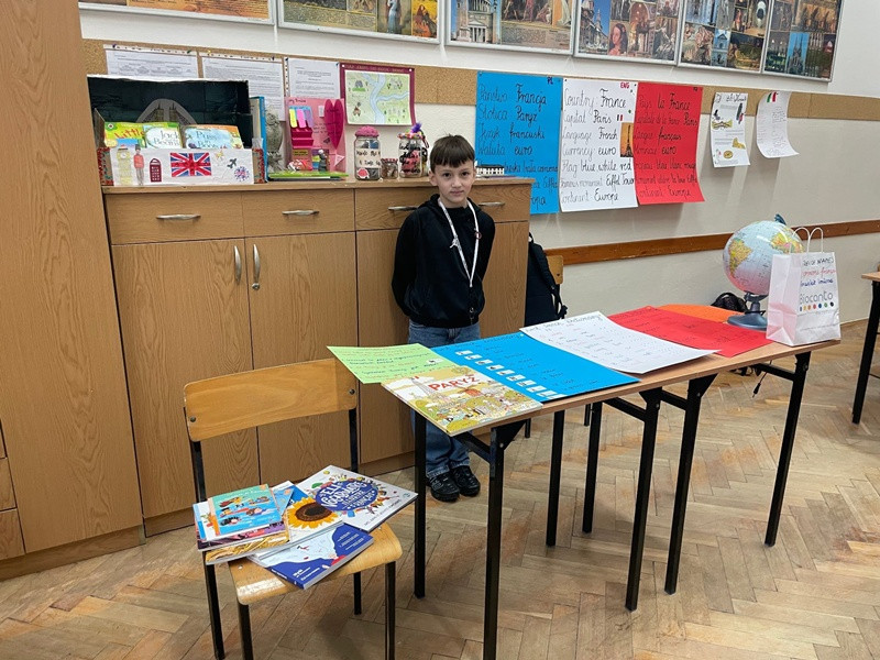 Podczas przerw międzylekcyjnych sala nr 16 zamieniła się w prawdziwą językową mapę świata. Uczniowie zaprezentowali m.in. język hiszpański, francuski, włoski, japoński oraz koreański, ucząc rówieśników podstawowych zwrotów, przygotowując quizy, słowniczki i krótkie prezentacje kulturowe.