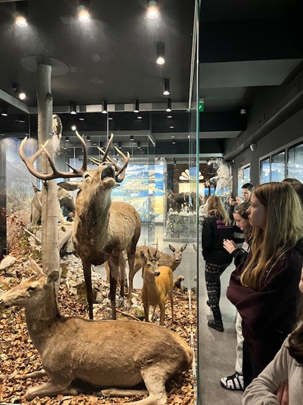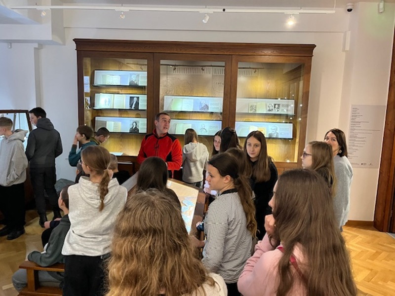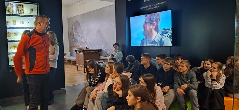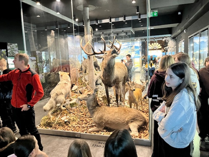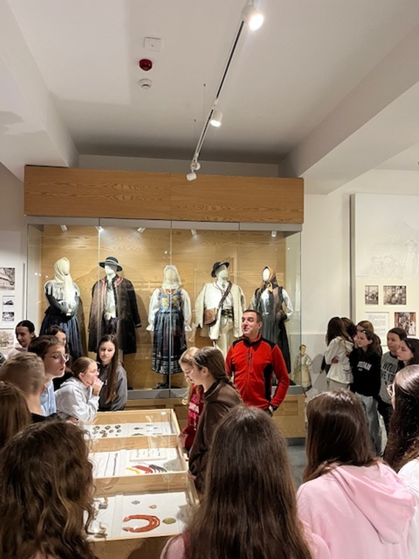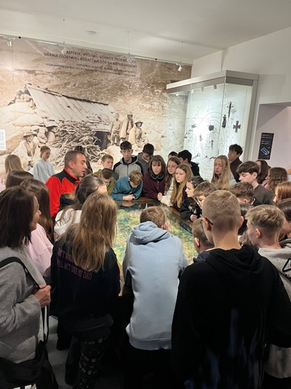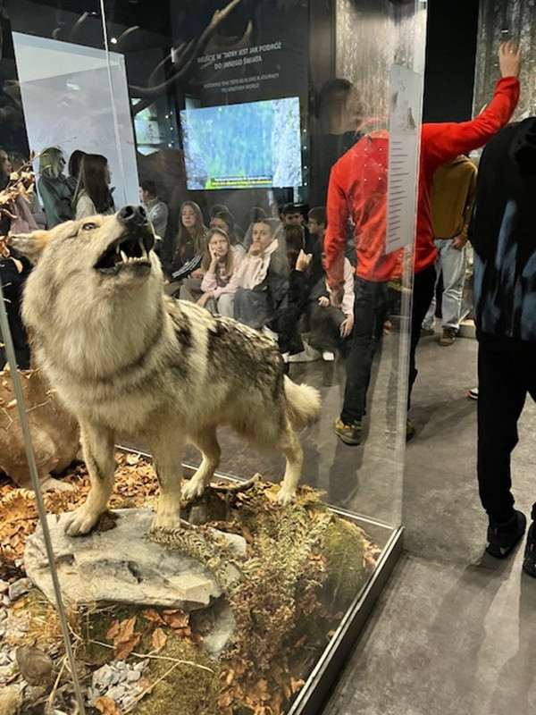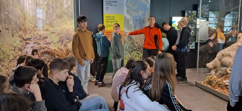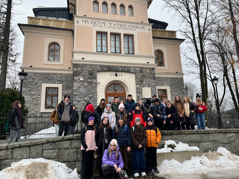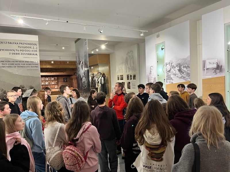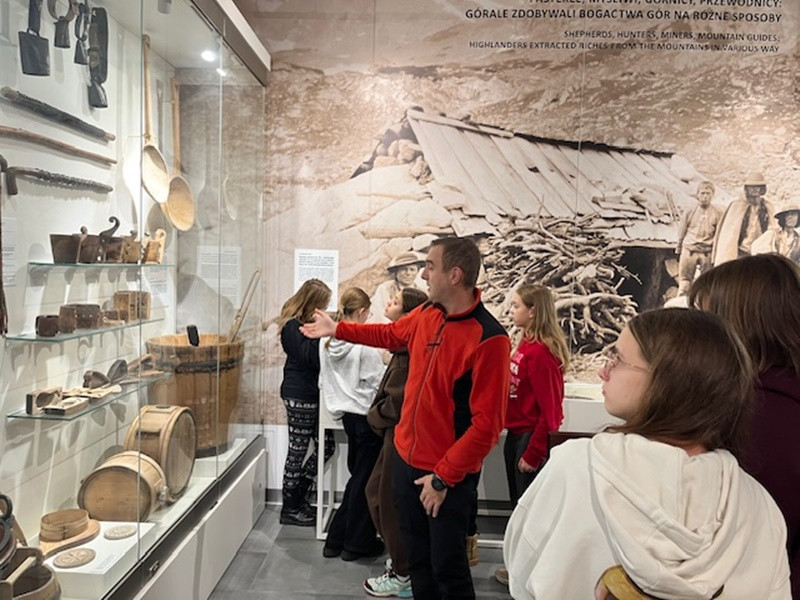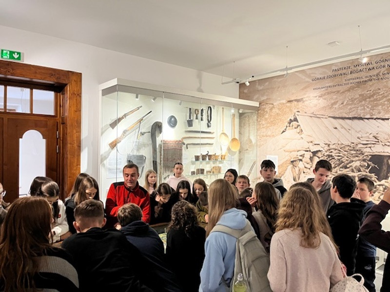 Pierwszym punktem programu było zwiedzanie Muzeum Tatrzańskiego im. dr Tytusa Chałubińskiego gdzie spotkaliśmy się z panem przewodnikiem Janem Krzeptowskim - Sabałą, którego pra, pra, pradziadek był wiernym przyjacielem dr Chałubińskiego. Uczniowie zapoznali się z przyrodą Tatr, dowiedzieli się, że Zakopane słynie z unikalnego stylu architektonicznego, który zapoczątkował Stanisław Witkiewicz - styl ten łączy elementy tradycyjnej architektury góralskiej z motywami inspirowanymi przyrodą Tatr. Pan Krzeptowski barwnie opowiadał o tradycjach góralskich oraz o historii regionu.