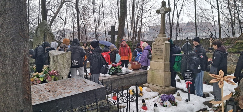Następnie udaliśmy się na Pęksowy Brzyzek, czyli najstarszą nekropolię w Zakopanem. Na tym cmentarzu pochowane są wybitne postacie polskiej kultury, taternictwa i sztuki: min. Kazimierz Przerwa- Tetmajer, Kornel Makuszyński, Władysław Orkan, Tytus Chałubiński, Stanisław Marusarz i Helena Marusarzówna, Bronisław Czech, Jan Krzeptowski - Sabała, Władysław Hasior, Stanisław Witkiewicz. Odwiedziliśmy również kościółek na Pęksowym Brzyzku, który jest jednym z najstarszych zabytków miasta i ważnym miejscem dla lokalnej społeczności. Jego założycielem był ks. Józef Stolarczyk wywodzący się z pobliskiego Jordanowa.