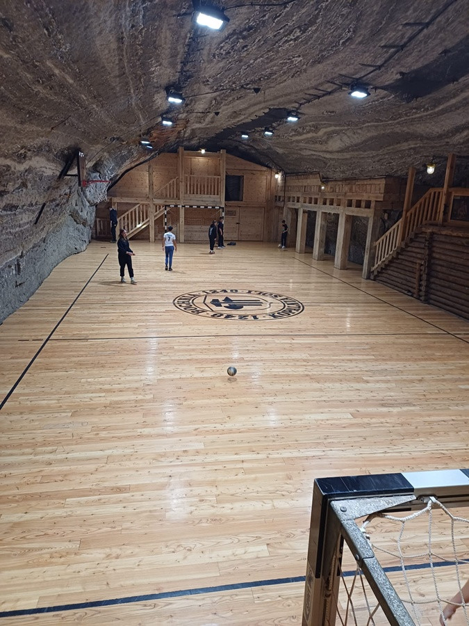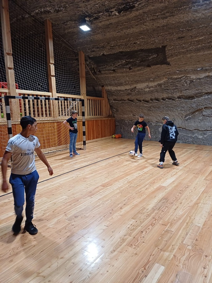 Podczas podziemnego spaceru słuchaliśmy prelekcji przewodnika oraz oglądaliśmy prezentacje multimedialne które przybliżyły nam historię tego zabytkowego miejsca. Podziemny spacer trwał około 4 godzin, a jedną głównych atrakcji był rejs po podziemnym jeziorze. Uczniowie skorzystali również z możliwości gry na podziemnym boisku sportowym.