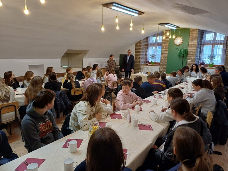 Piątek był ostatnim dniem pobytu naszych gości ze Słowenii w Myślenicach. Po bardzo atrakcyjnym dniu ok. godz. 16. wszyscy zebrali się na stołówce szkolnej, by uroczyście zakończyć tydzień wymiany polsko-słoweńskiej.