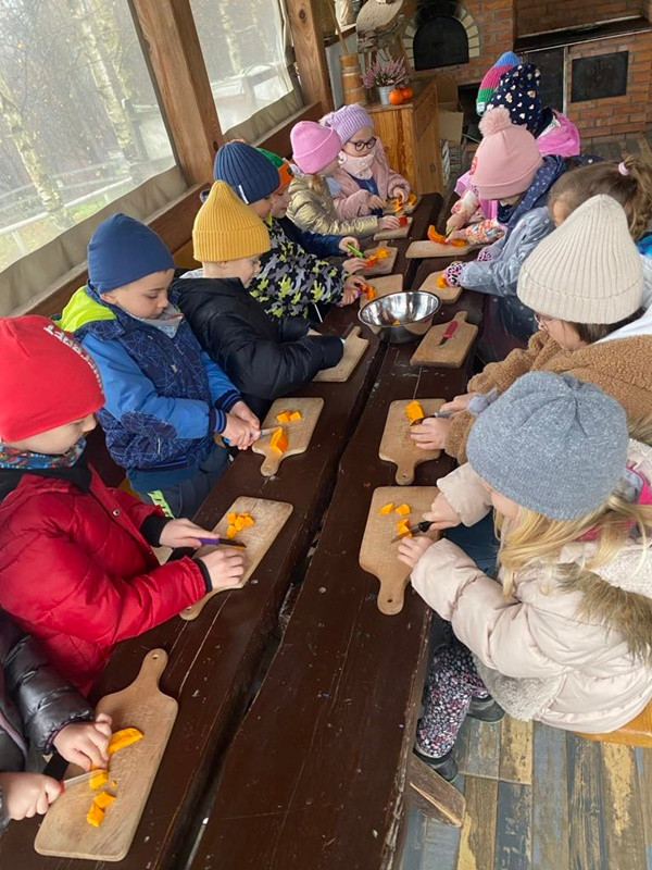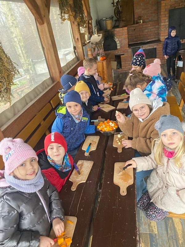 Wyjazd łączył zabawę z edukacją przyrodniczą i kulinarną. Najważniejsze były uśmiechy, współpraca i nowe doświadczenia — a pyszna zupa dyniowa była idealnym podsumowaniem wyjazdu.