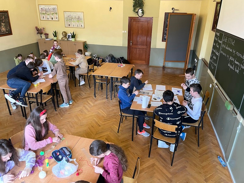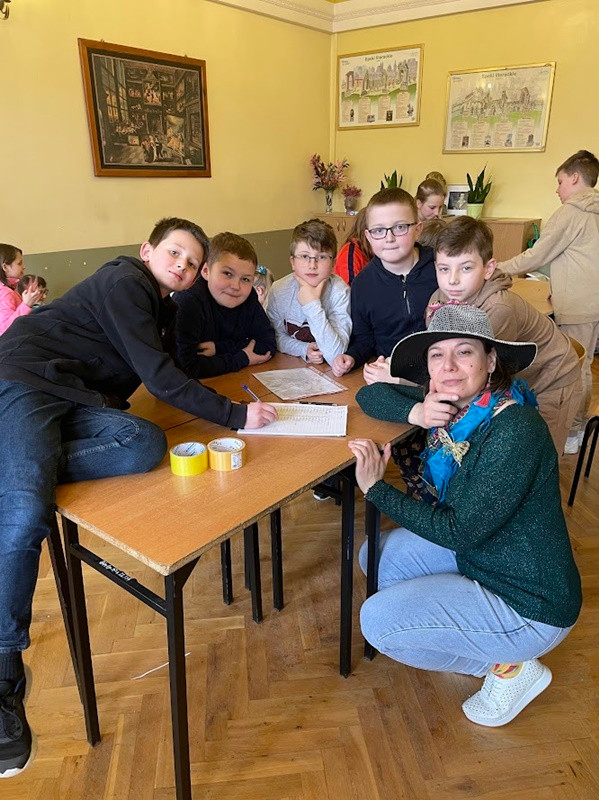 15 marca 2023 r. uczniowie klasy 4a przenieśli się na dwie godziny zajęć do Akademii pani Muny, która zainspirowana lekcjami opisanymi w lekturze „Akademia pana Kleksa" Jana Brzechwy, przygotowała dla uczniów niezwykłe zajęcia takie jak: