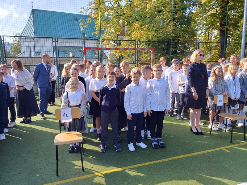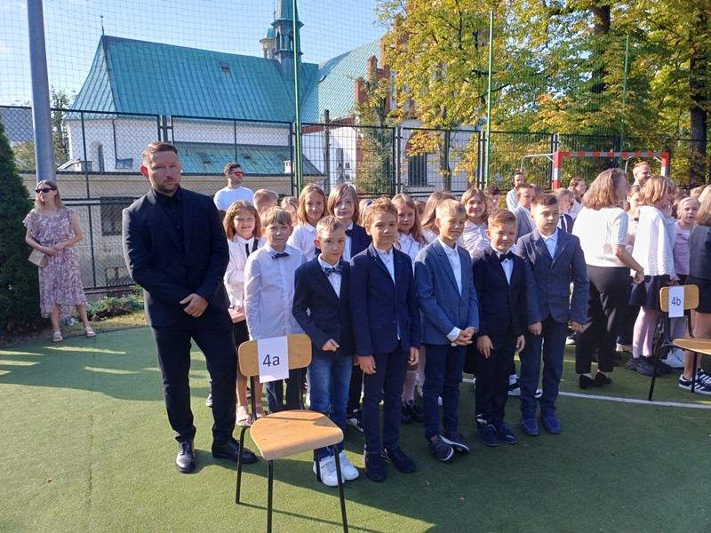 Szczególnie serdecznie powitaliśmy uczniów klas pierwszych, którzy po raz pierwszy przekroczyli próg naszej szkoły. Zostali oni symbolicznie przyjęci w poczet społeczności szkolnej, co wzbudziło wiele emocji zarówno wśród dzieci, jak i ich rodziców.