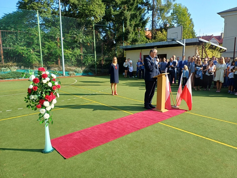 Głos zabrał Dyrektor szkoły, który w swoim przemówieniu skierował słowa otuchy i motywacji do wszystkich uczniów, życząc im wytrwałości, ciekawości poznawczej oraz wielu sukcesów w nadchodzącym roku. Podkreślił również rolę szkoły jako miejsca nie tylko nauki, ale także budowania relacji, wartości i wzajemnego szacunku.
