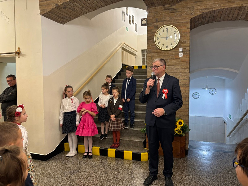 Uroczystość rozpoczęła się o godzinie 9:00, gdzie Pan dyrektor powitał wszystkich uczniów klas 1-3. Następnie uczniowie zaprezentowali program artystyczny, w którym znalazły się wiersze i pieśni patriotyczne przypominające trudną drogę Polaków do wolności. Podczas występu nie zabrakło refleksji nad znaczeniem słowa „niepodległość”. Uczniowie w piękny sposób przypomnieli, że to nie tylko historia, ale również nasza codzienna odpowiedzialność za ojczyznę, język i kulturę.