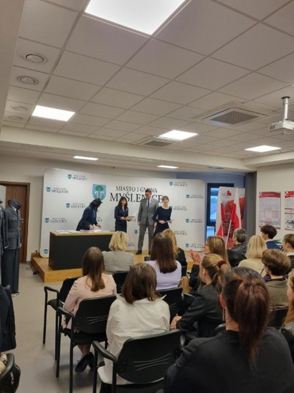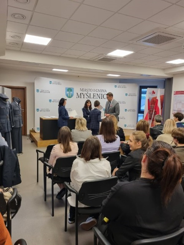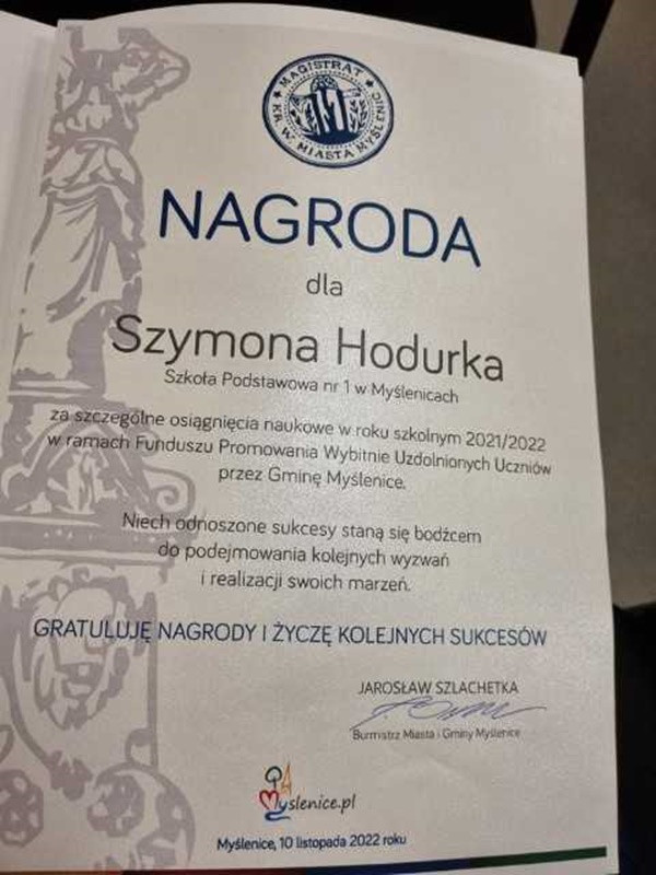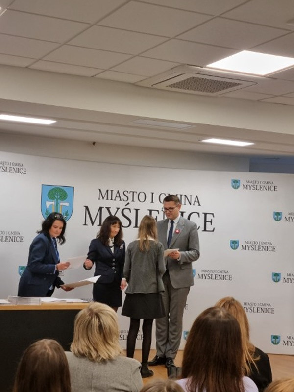 Burmistrz Miasta i Gminy Myślenice P. Jarosław Szlachetka nagrodził wyróżniających się uczniów. Z naszej szkoły nagrodzeni zostali Szymon Hodurek z klasy 7a, Jakub Jąkała z klasy 7a, Elżbieta Matoga z klasy 8b, Ewa Pawlikowska z klasy 7a, Maria Olesek (absolwentka).