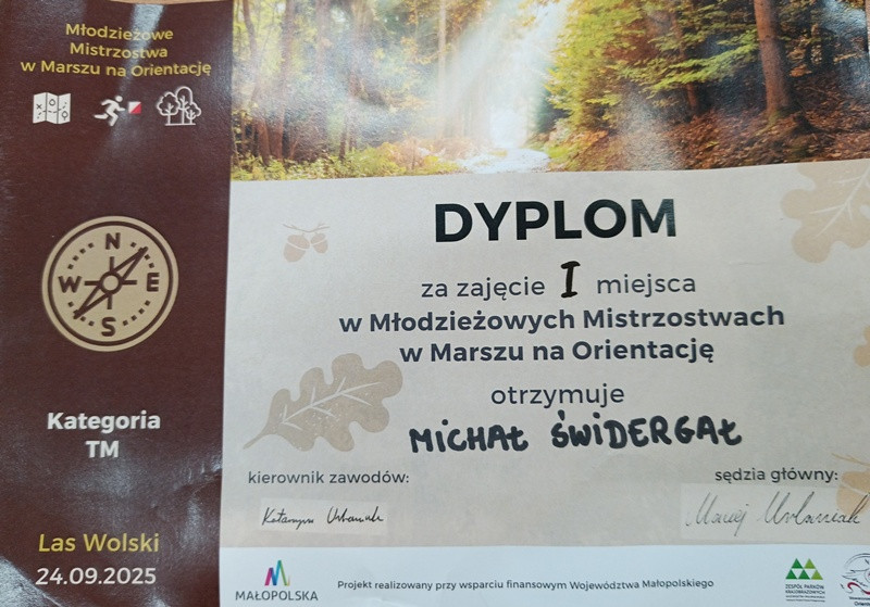 W środę 24 września 2025 roku osiemnastu uczniów naszej szkoły pod opieką Pani Katarzyny Twardosz i Pani Moniki Kozyry - Ulman udały się do Krakowa, aby wziąć udział w Młodzieżowych Mistrzostwach w Marszu na Orientację. Baza zawodów została zlokalizowana w malowniczym Lesie Wolskim.
