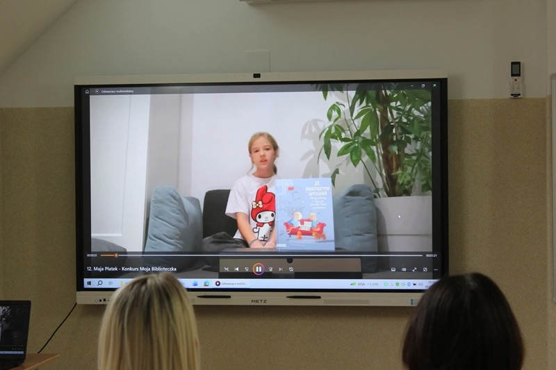 Zgromadzona publiczność miała okazję obejrzeć nagrodzone filmiki, w których uczniowie z ogromnym zaangażowaniem opowiadali o swoich ulubionych książkach – tych, które inspirują, uczą oraz skłaniają do refleksji. Każda prezentacja była wyjątkowa, a różnorodność pomysłów pokazała, jak bogaty i ciekawy jest świat czytelniczych pasji naszych uczniów.
