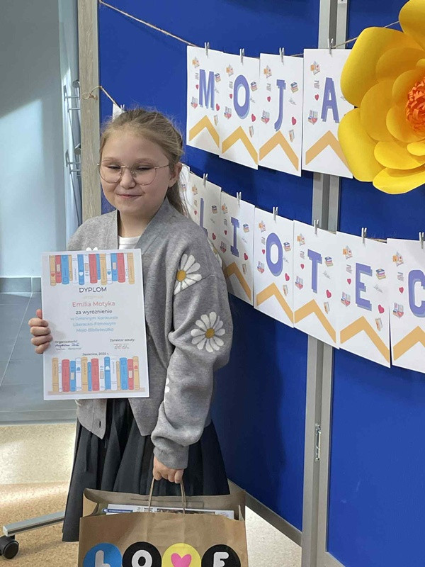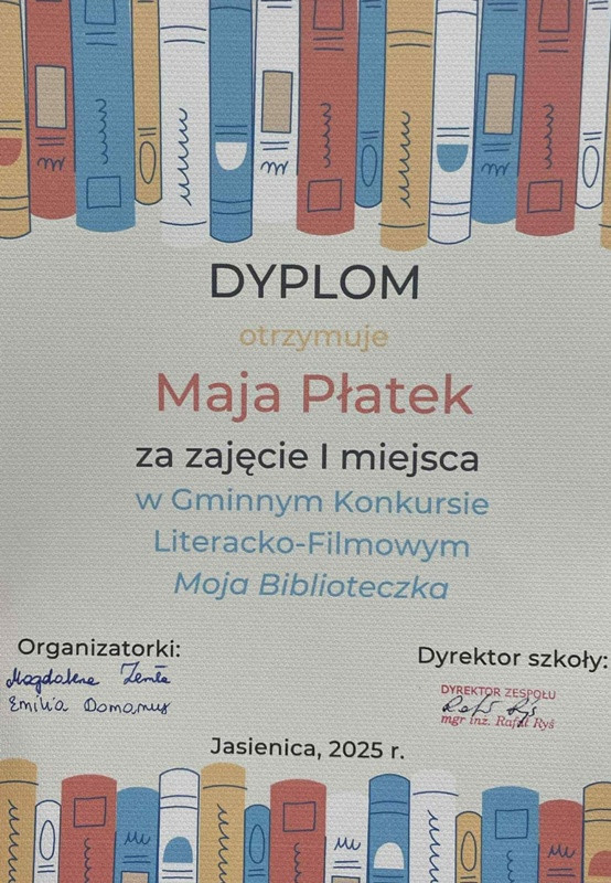 Serdecznie gratulujemy naszym uczennicom sukcesu oraz dziękujemy za ich zaangażowanie, kreatywność i piękne promowanie czytelnictwa! Konkurs „Moja Biblioteczka” to doskonały przykład na to, że książki wciąż potrafią inspirować młodych ludzi do działania i twórczego myślenia.