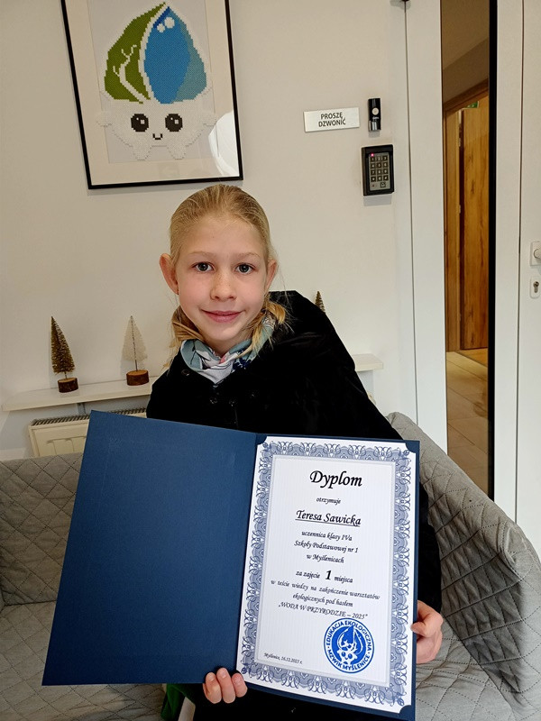 Miło nam poinformować, że Teresa Sawicka uczennica klasy 4a zajęła I miejsce w teście wiedzy, który odbył się 10 grudnia na zakończenie warsztatów ekologicznych „Woda w przyrodzie 2025”. Warsztaty zostały zorganizowane przez Miejski Zakład Wodociągów i Kanalizacji w Myślenicach.